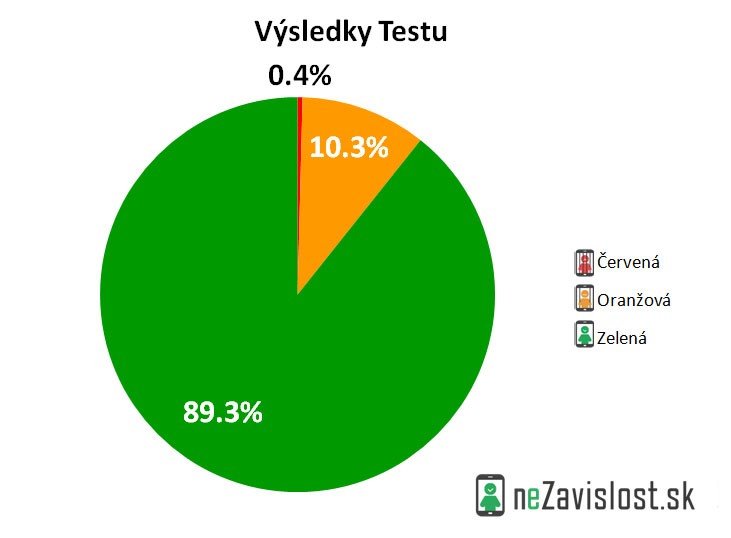 Graf ukazuje výsledky testu nadmerného používania internetu. Zelená farba informuje,  že používanie internetu v mobile je bez príznakov závislosti. Pri oranžovej sa môžu vyskytovať začínajúce problémy a červená farba znamená, že sa prejavujú problémy s nadmerným používaním internetu, kde sa odporúča vyhľadať príslušný odborník. Výsledky čísel používateľov testu sú: zelená úroveň 89,3%, oranžová 10,3% a červená 0,4%.