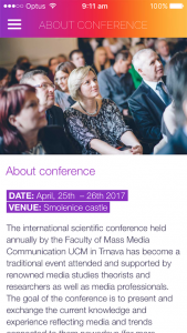 Pre potreby konferencie bola vytvorená aj  mobilná aplikácia Megatrends and Media, ktorá je dostupná pre platformy Android a IOS. „Mobilné aplikácie sú na podobných podujatiach vyšším štandardom a je to silný trend, ktorý sa nedá dlhodobo ignorovať“, vysvetľuje Peter Murár. V aplikácii môžu záujemcovia nájsť informácie o konferencii, celom programe a tiež fotografie a prihlášku. Okrem mobilnej aplikácie sú všetky dôležité informácie dostupné aj na webovej stránke Fakulty masmediálnej komunikácie.